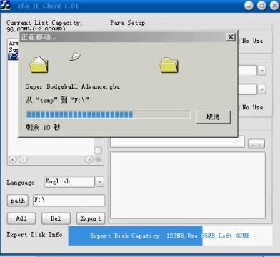 5. Click [Export] to transfer GBA ROMs that already edited into U-disk (EFA2 NAND)